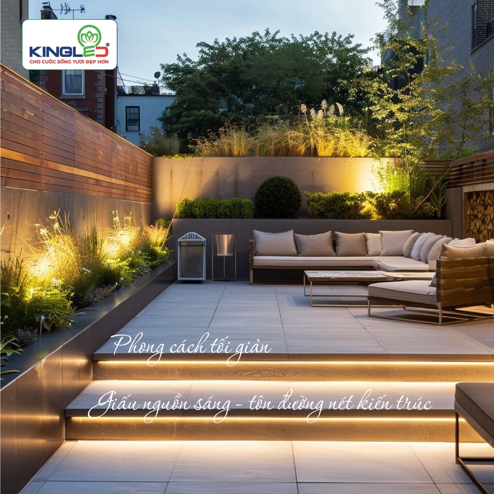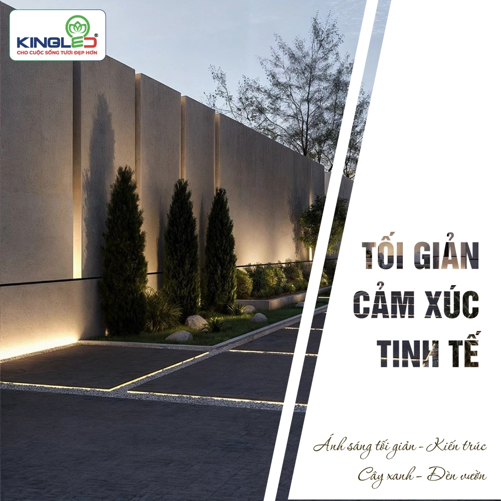 Năm 2025, ánh sáng sân vườn chuyển dịch mạnh sang phong cách tối giản. Thay vì quá nhiều đèn, gia chủ ưu tiên những điểm sáng có chủ đích: soi rõ đường đi, nhấn mạnh tiểu cảnh, tạo cảm giác thư giãn và hài hòa trong tổng thể. Thiết kế đèn cũng tinh gọn hơn, tập trung vào đường nét thẳng, thân nhôm chắc chắn và ánh sáng dịu nhằm phù hợp với cả kiến trúc hiện đại lẫn không gian thiên nhiên.