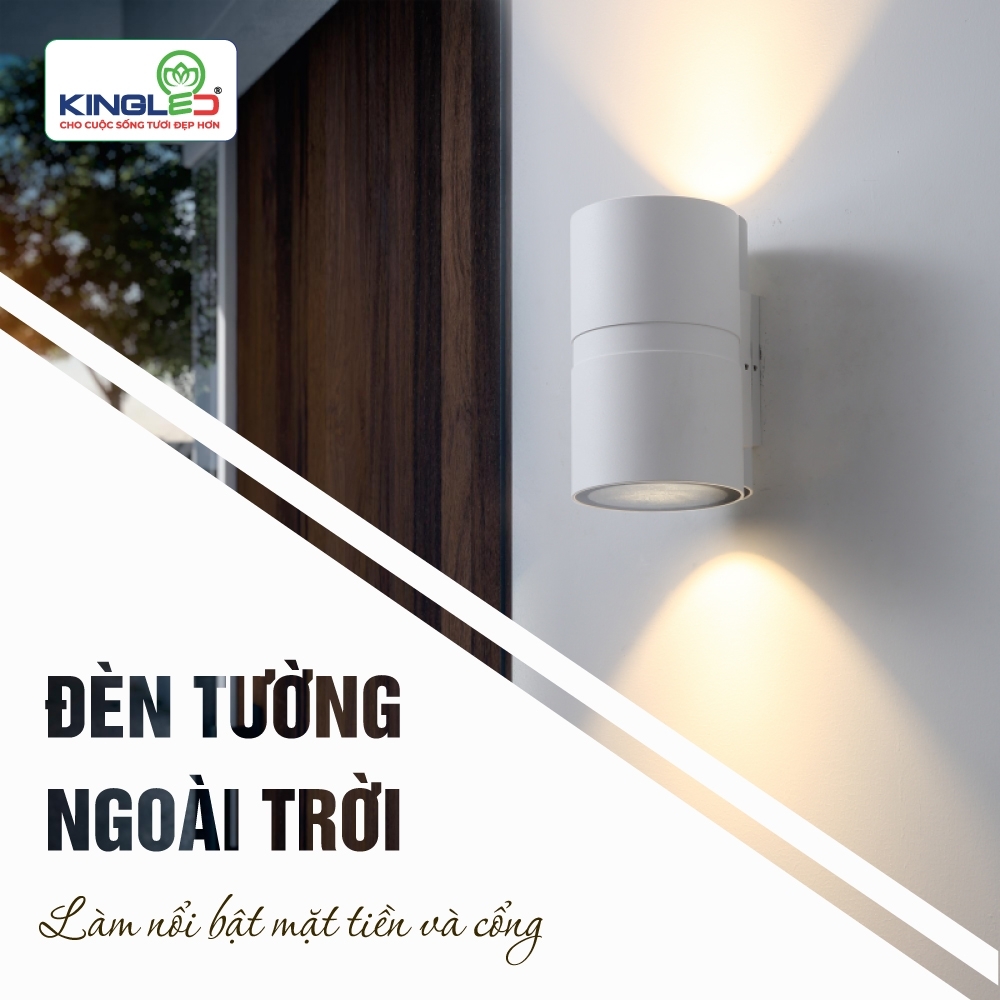 Đèn tường Kingled phù hợp nhiều phong cách kiến trúc. Ánh sáng hắt lên/hắt xuống làm nổi bật mảng tường rào và mặt tiền, đồng thời tăng độ an ninh khi về đêm.