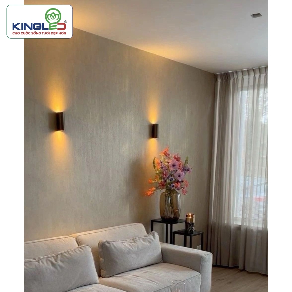 Sản phẩm được thiết kế ánh sáng chiếu lên và chiếu xuống cùng lúc, tạo nên những vệt sáng rõ nét, nhấn mạnh vào cấu trúc bức tường và làm nổi bật đường nét kiến trúc. Nhiệt độ màu 3000K cho ánh sáng vàng ấm áp, gần gũi, vừa đáp ứng nhu cầu chiếu sáng vừa tạo bầu không khí thư giãn và tinh tế.