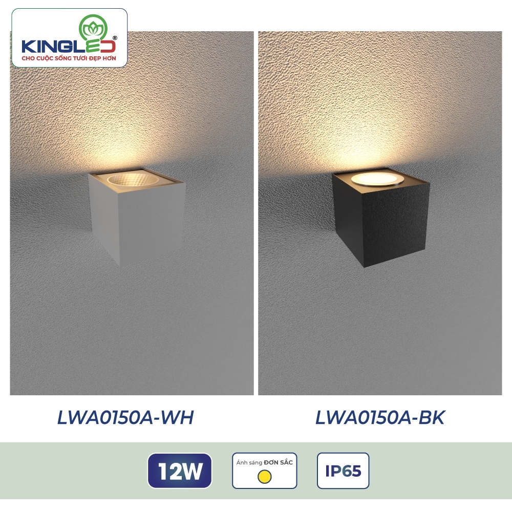 Đèn LED gắn tường ngoài trời 0150 mang thiết kế khối vuông vững chắc, ánh sáng hắt lên hoặc hắt hai chiều, tạo điểm nhấn kiến trúc tinh tế. Với công suất đa dạng 12W và 2*12W, thân nhôm cao cấp, chống nước IP65, sản phẩm không chỉ bền bỉ với thời tiết mà còn nâng tầm thẩm mỹ cho không gian ngoài trời.