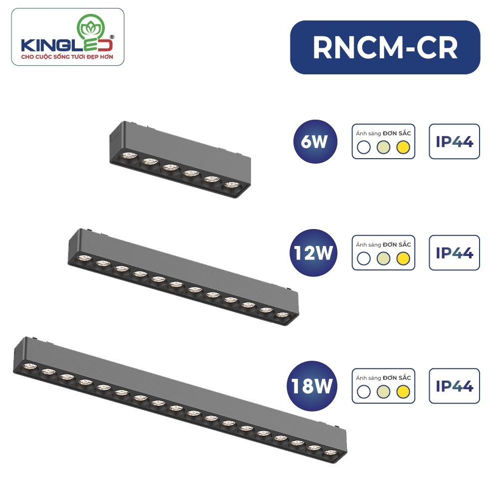Trong hệ đèn ray nam châm siêu mỏng 26mm, đèn chiếu rọi RNCM-CR Series được thiết kế để tạo điểm nhấn ánh sáng tập trung, làm nổi bật từng chi tiết trong không gian. Với kích thước module nhỏ gọn, đèn dễ dàng lắp nổi hoặc âm cùng ray siêu mỏng, giữ nguyên sự tinh tế của thiết kế nội thất. Sản phẩm sử dụng chip LED Samsung, chỉ số hoàn màu CRI > 90, đảm bảo ánh sáng trung thực, tiết kiệm điện và vận hành bền bỉ.