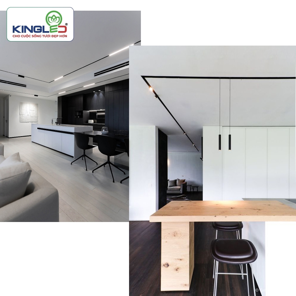 Với kích thước ray chỉ 26mm, đèn gắn gọn gàng trong hệ ray siêu mỏng, gần như “ẩn” trong trần, giúp không gian thanh thoát và hiện đại hơn mà vẫn đảm bảo công năng chiếu sáng.