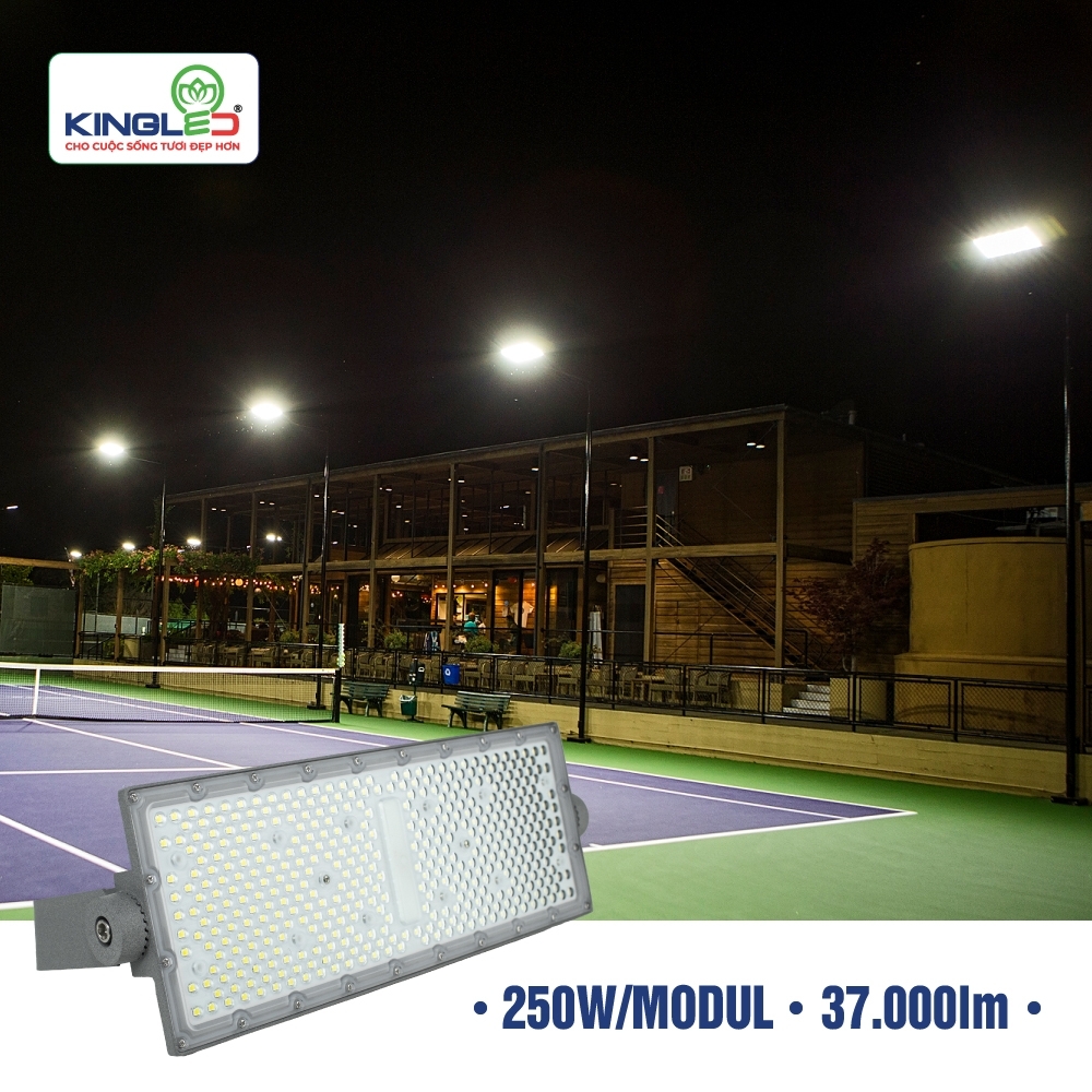 250W/modul – quang thông 37.000 lm, đủ sức “gánh” nhiều loại sân