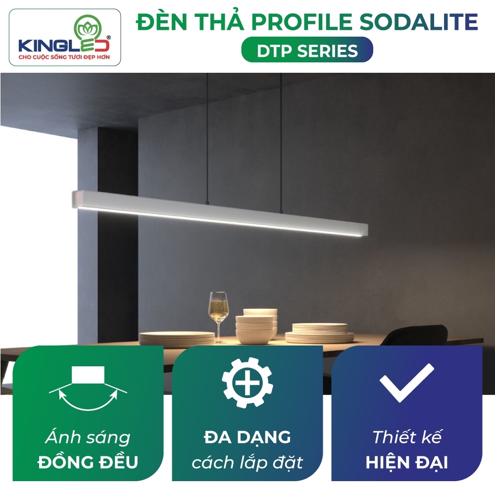 Kingled ra mắt series đèn thả Profile Sodalite (DTP Series) – dòng đèn thả với thiết kế dài, thanh mảnh, mang đến ánh sáng đồng đều, hiện đại cho không gian làm việc và sinh hoạt. Sử dụng chip LED Samsung thế hệ mới, chỉ số hoàn màu CRI > 90, DTP Series phù hợp cho văn phòng, phòng họp, quán café, nhà hàng và các không gian cần ánh sáng mềm mại, tiết kiệm điện.