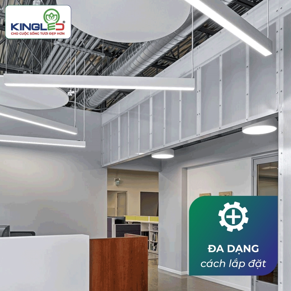 Có thể lắp thả trần bằng cáp hoặc gắn trực tiếp, linh hoạt cho nhiều phong cách nội thất.