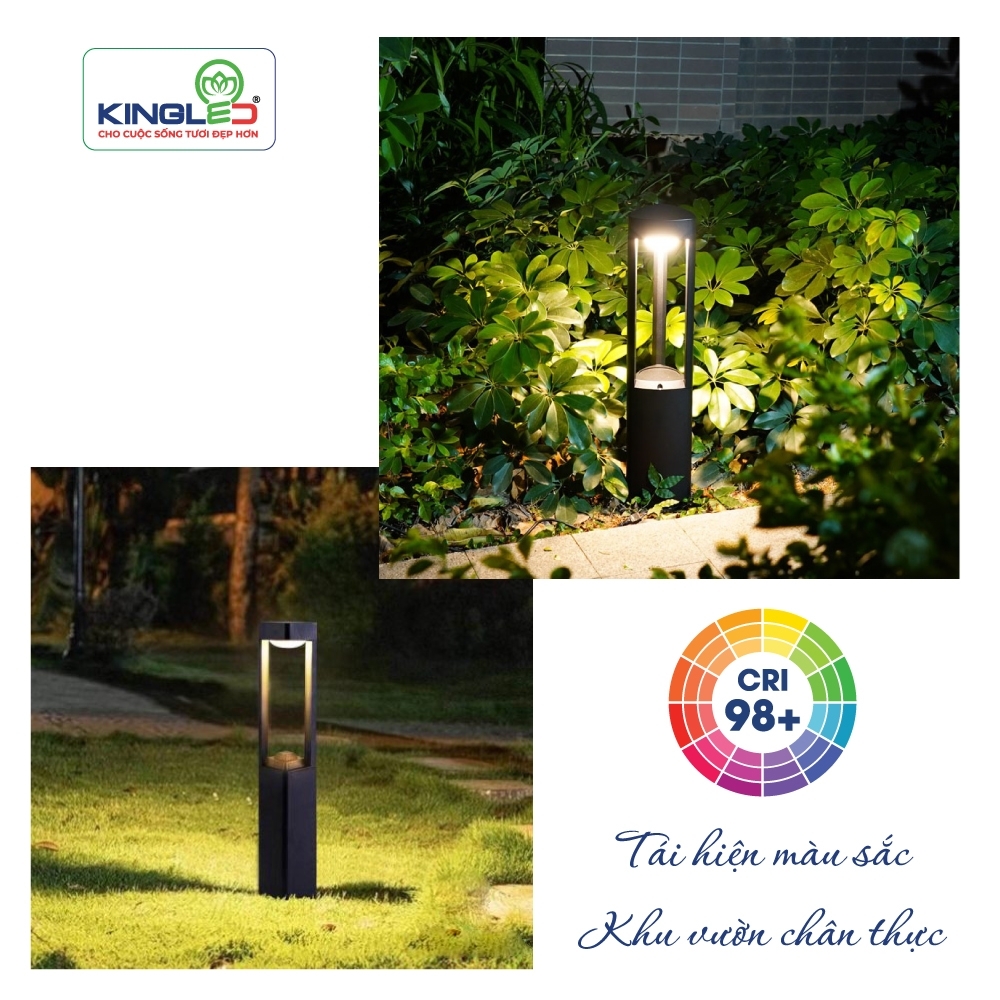 Nhờ chip LED COB chất lượng cao, đèn đạt CRI 98 – gần với ánh sáng tự nhiên. Mọi chi tiết như màu xanh của lá, màu đất, đá, vân gỗ, sắc hoa đều được thể hiện rõ ràng và chân thật hơn hẳn các loại đèn sân vườn thông thường. Điều này làm cho tổng thể cảnh quan ban đêm trở nên có chiều sâu và giàu cảm xúc hơn.