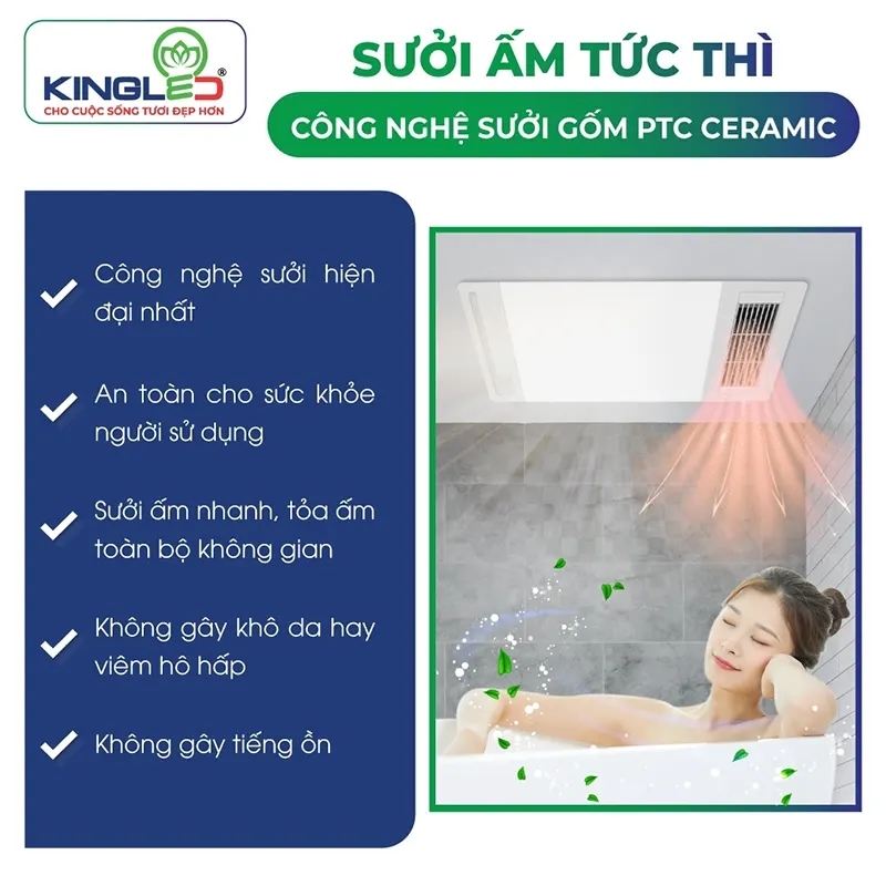 - Ứng dụng công nghệ sưởi ấm không đốt oxy, không gây khô da, tỏa ấm cực đều - cực nhanh trong không gian