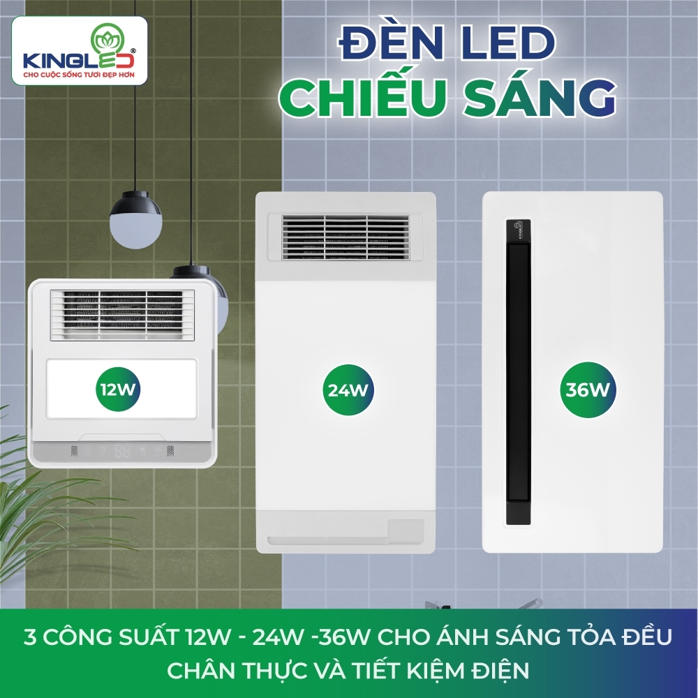 - Công suất 12W (kích thước 3030) và 24W (kích thước 3060) phù hợp với mọi diện tích phòng tắm