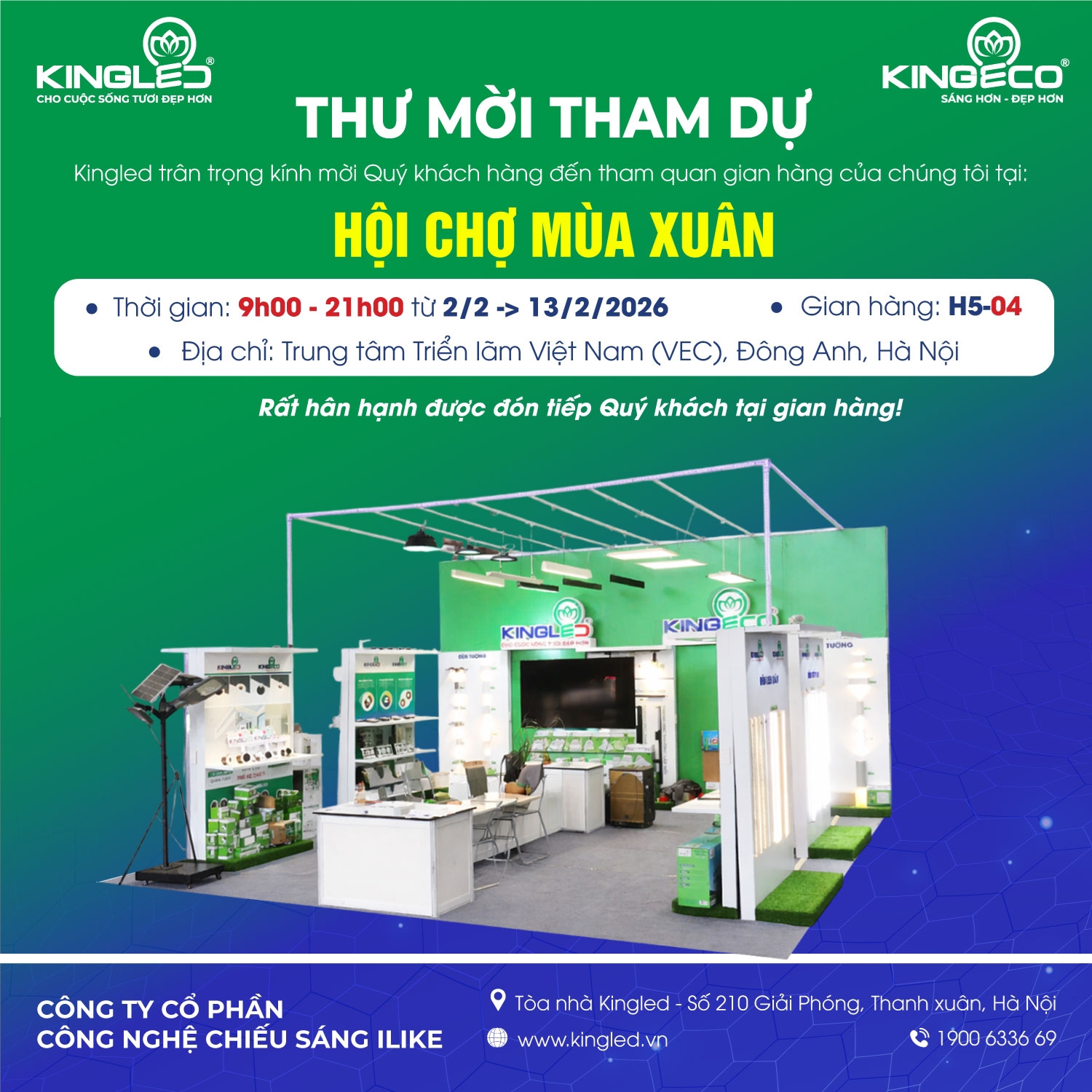 Hòa chung không khí rộn ràng của những ngày đầu năm mới 2026, Kingled & Kingeco trân trọng kính mời Quý khách tới tham quan gian hàng của chúng tôi tại Hội Chợ Mùa Xuân. Đây là dịp để chúng ta cùng nhau khai xuân, thắt chặt tình gắn kết và trải nghiệm những giải pháp chiếu sáng chất lượng cao, tích hợp công nghệ mới nhất hiện nay.