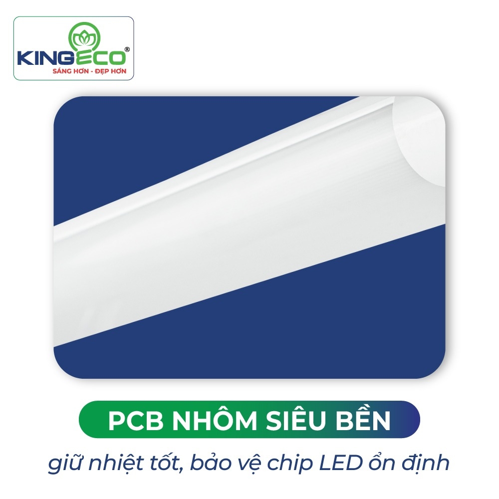 Một trong những yếu tố quan trọng tạo nên độ bền của Tuýp Oval Kingled là tấm PCB nhôm siêu bền, có khả năng tản nhiệt nhanh và ổn định. Không phải tuýp LED nào cũng duy trì được độ sáng lâu dài, nhưng với PCB nhôm dày, nhiệt lượng từ chip được phân tán đều, giúp chip LED không bị quá nóng. Nhờ đó, ánh sáng của tuýp duy trì ổn định qua nhiều năm, hạn chế tối đa suy giảm quang thông – rất quan trọng cho những nơi cần bật sáng liên tục như cửa hàng, nhà trọ hoặc khu vực công cộng.